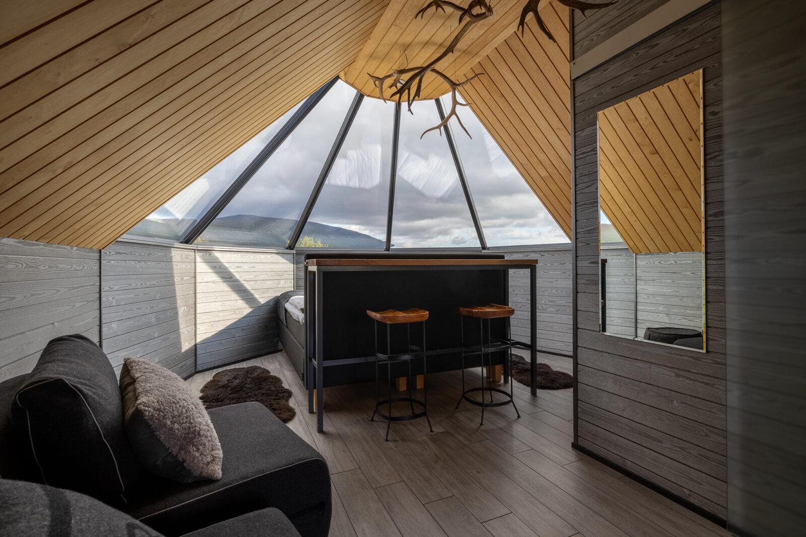 Vietä lomaa ainutlaatuisella ja aivan yksityisellä näköalapaikalla: lasikatosta avautuu alati vaihtuva näkymä ympäri vuoden. Ihaile kesän lumoavaa yötöntä yötä, tutkaile tummenevien syysöiden tähtitaivasta, hurmaannu kaamoksen kauneudesta, nautiskele taianomaisista taivaanvalkeista.
