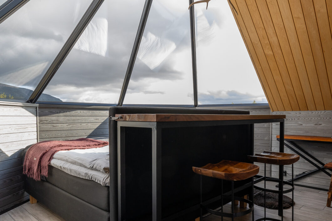 Neljässä 31 neliön kokoisissa igluissa on kaikki mukavuudet, joita voit odottaa hyvin varustellulta hotellihuoneelta. Lasikatto mahdollistaa uskomattomat näkymät ympäröivään luontoon ympäri vuoden. Tilalla vapaasti vaeltavat porot ilahduttavat majoittujia ja tarjoavat upeita valokuvausmahdollisuuksia.